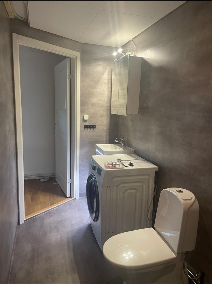 Laundry Convenience: The bathroom is equipped with a modern front-loading washing machine for ultimate independence during long-term stays.