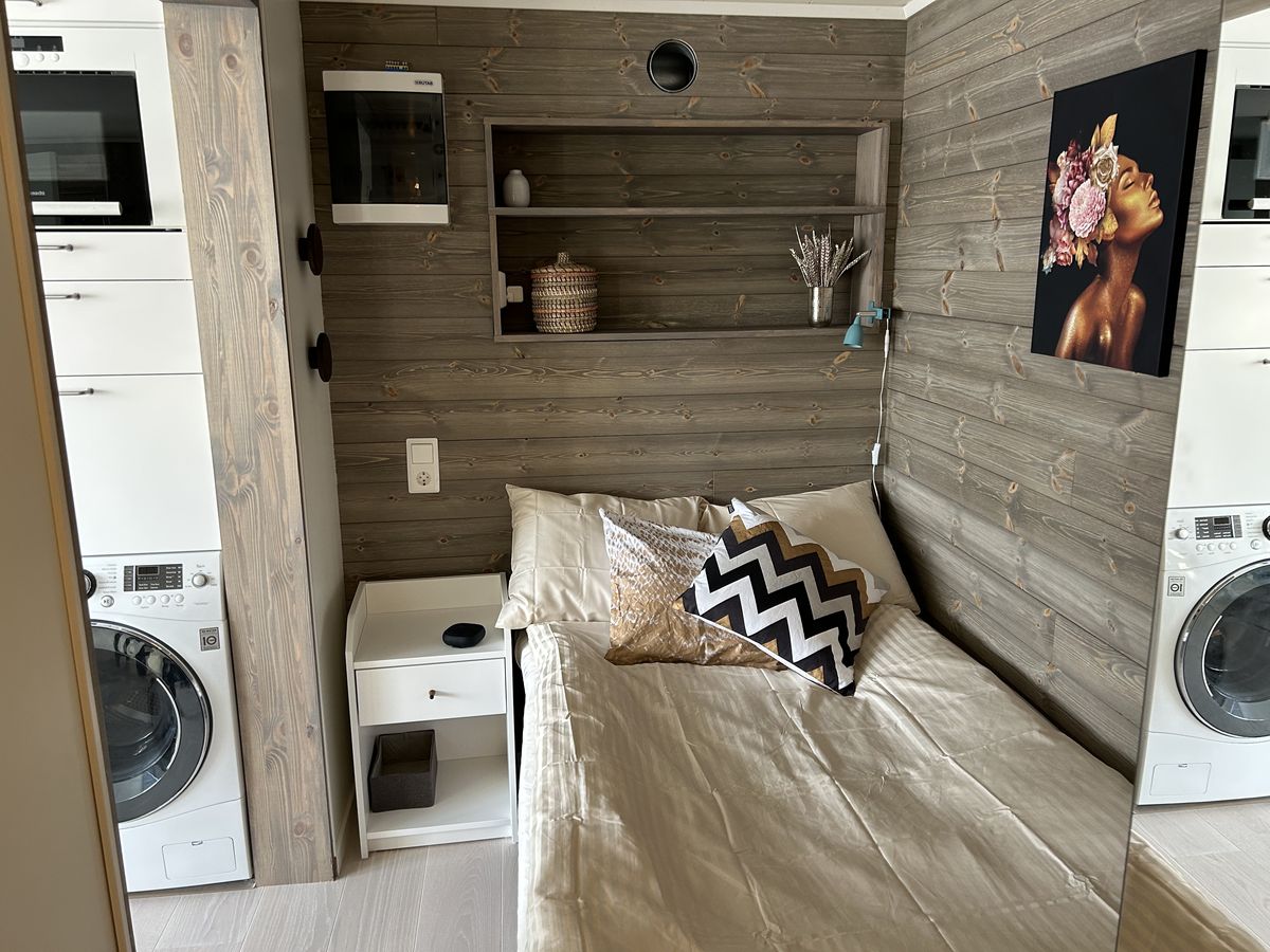 Boasting a private entrance and a breathtaking panoramic view of Storsjön and central Östersund, the property serves as a peaceful oasis just steps away from the pedestrian bridge connecting you to the city center. Whether you are unwinding by the functional open fireplace or enjoying the modern amenities, this residence is designed to feel spacious and premium, providing the perfect “home away from home” for long-term stays.