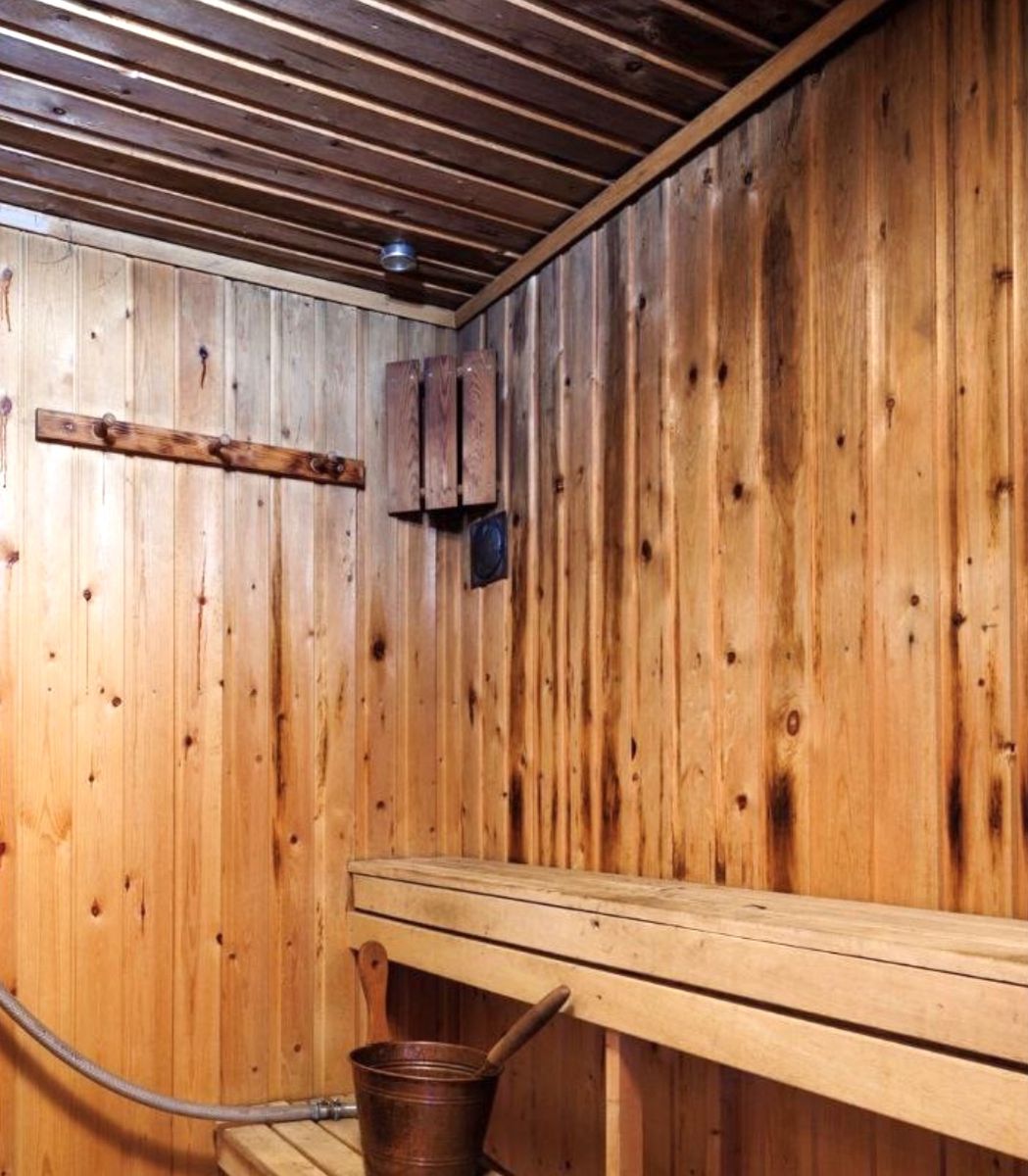 Wellness: A traditional wood-paneled sauna is included, equipped with washing/shower facilities.