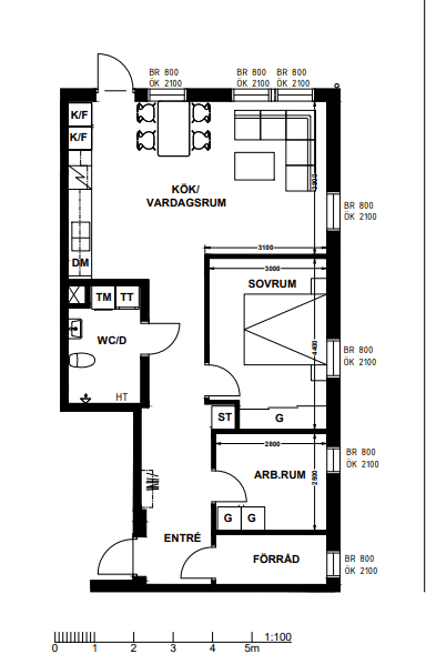 Ample Storage: In addition to built-in wardrobes, the apartment includes a spacious walk-in storage room (“FÖRRAD”) conveniently located within the unit.