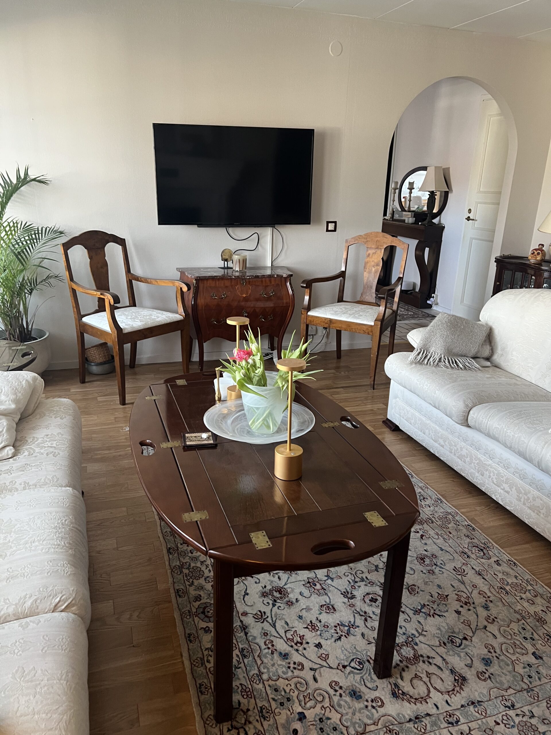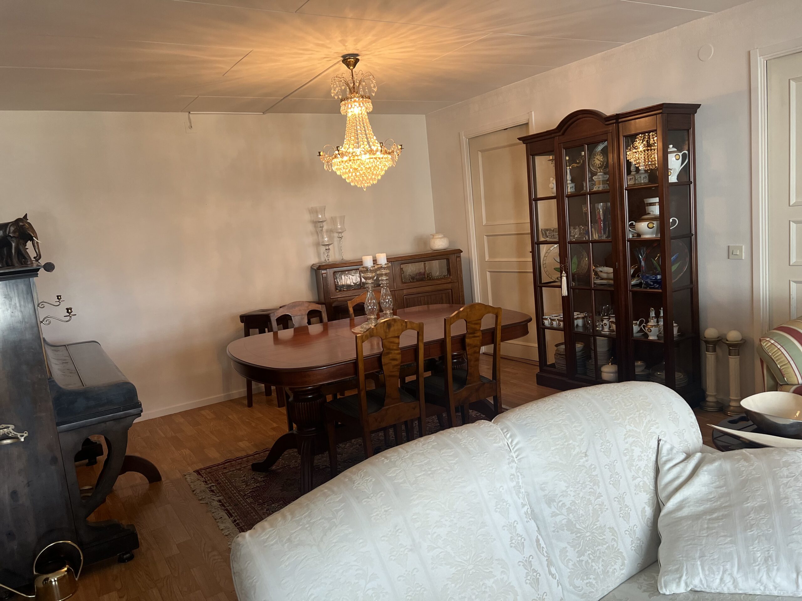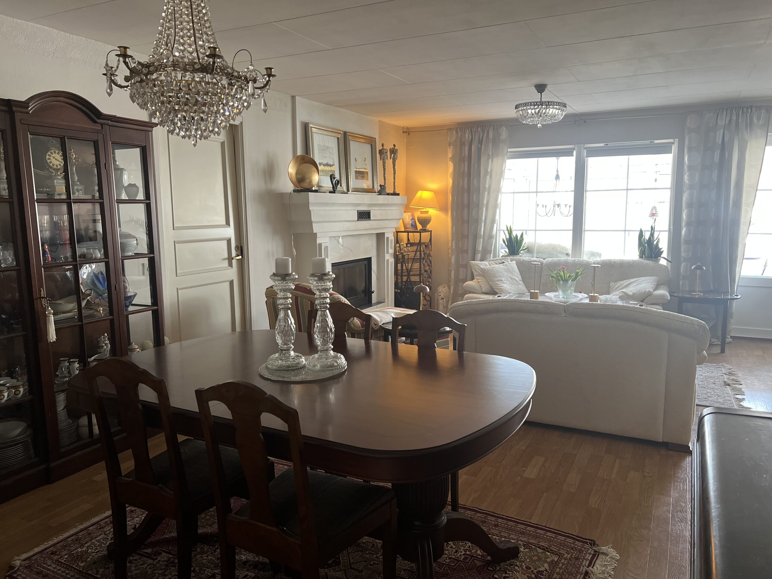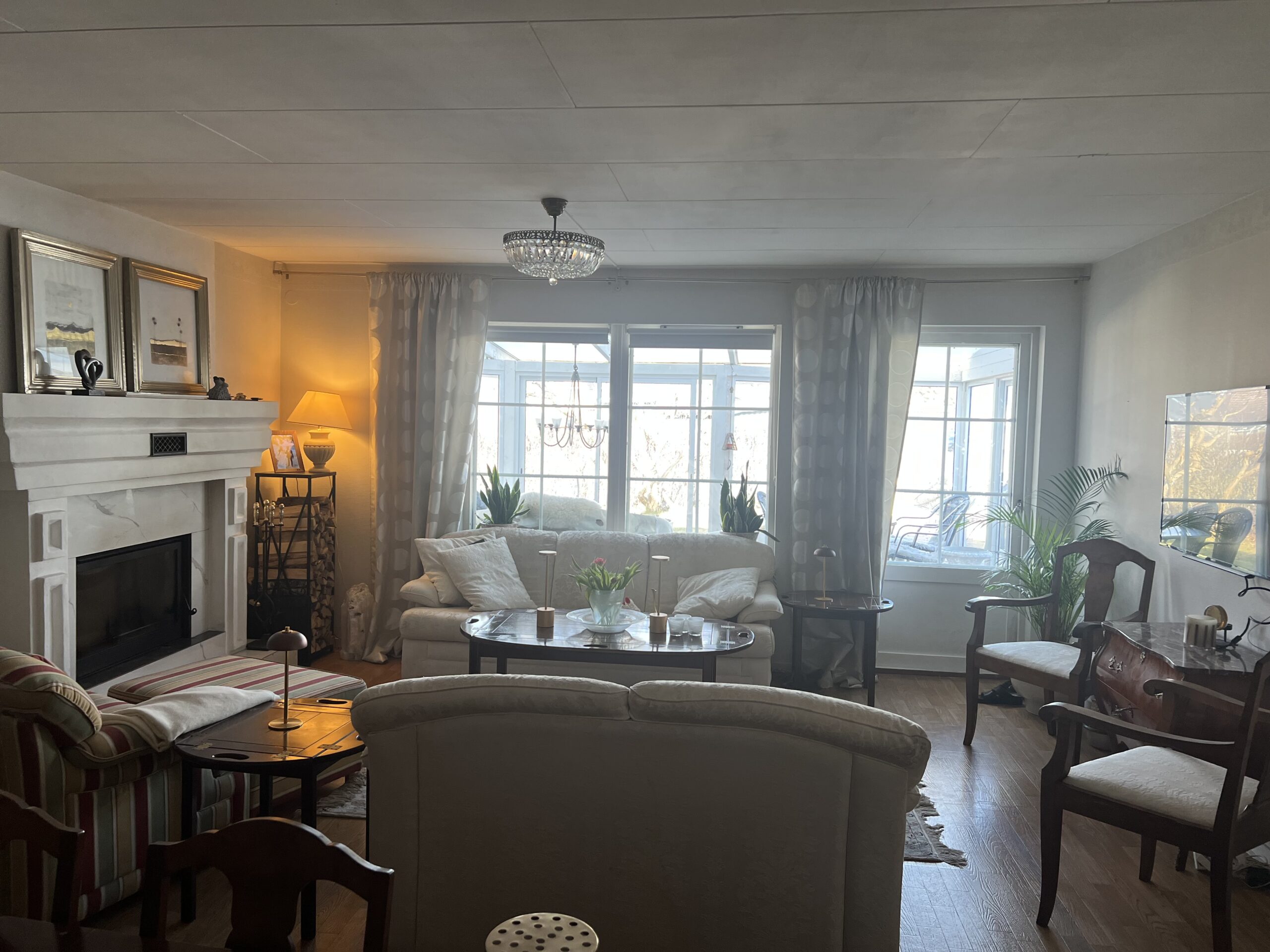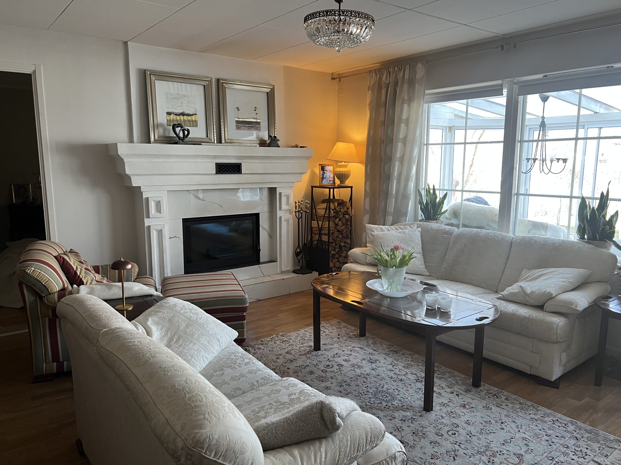 Discover refined living in this spacious 138-square-meter villa located in the tranquil community of Hammarö. Perfectly suited for corporate teams or relocated executives, this residence balances classic elegance with the essential comforts of home. The property features a grand living area with a traditional fireplace, a formal dining room, and a bright, enclosed sunroom that provides an ideal space for relaxation regardless of the season.