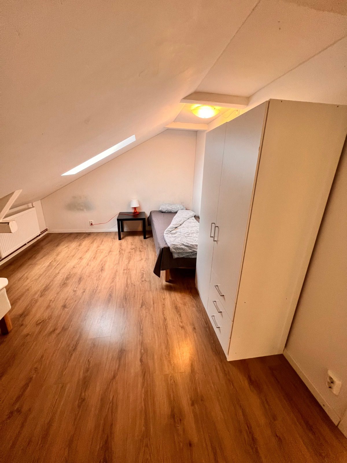 Welcome to this uniquely converted loft apartment in Malmö, specifically designed for extended corporate stays. Located on the second floor, this property offers a generous and well-organized open-plan living concept combined with four dedicated, private sleeping quarters. The charming attic architecture, complete with exposed white beams and natural light from large windows and skylights, creates an uplifting and highly professional environment.