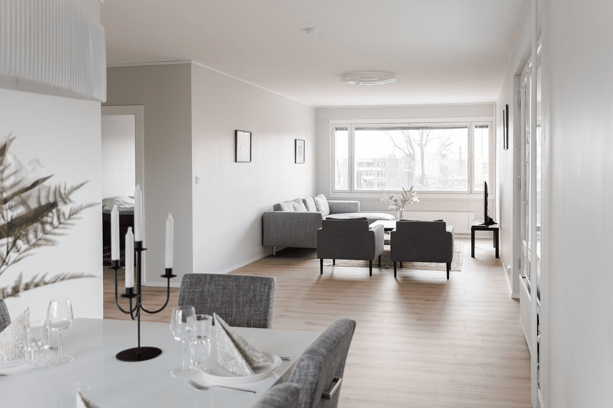 Located in the heart of Tampere, this expansive 114m² apartment offers a premier living solution for corporate teams and project groups. This residence combines the comfort of a high-end home with the functionality required for business travel. Recently renovated and fully furnished, the apartment provides a bright, airy atmosphere with windows facing three directions, ensuring a productive and restful environment for up to six guests.