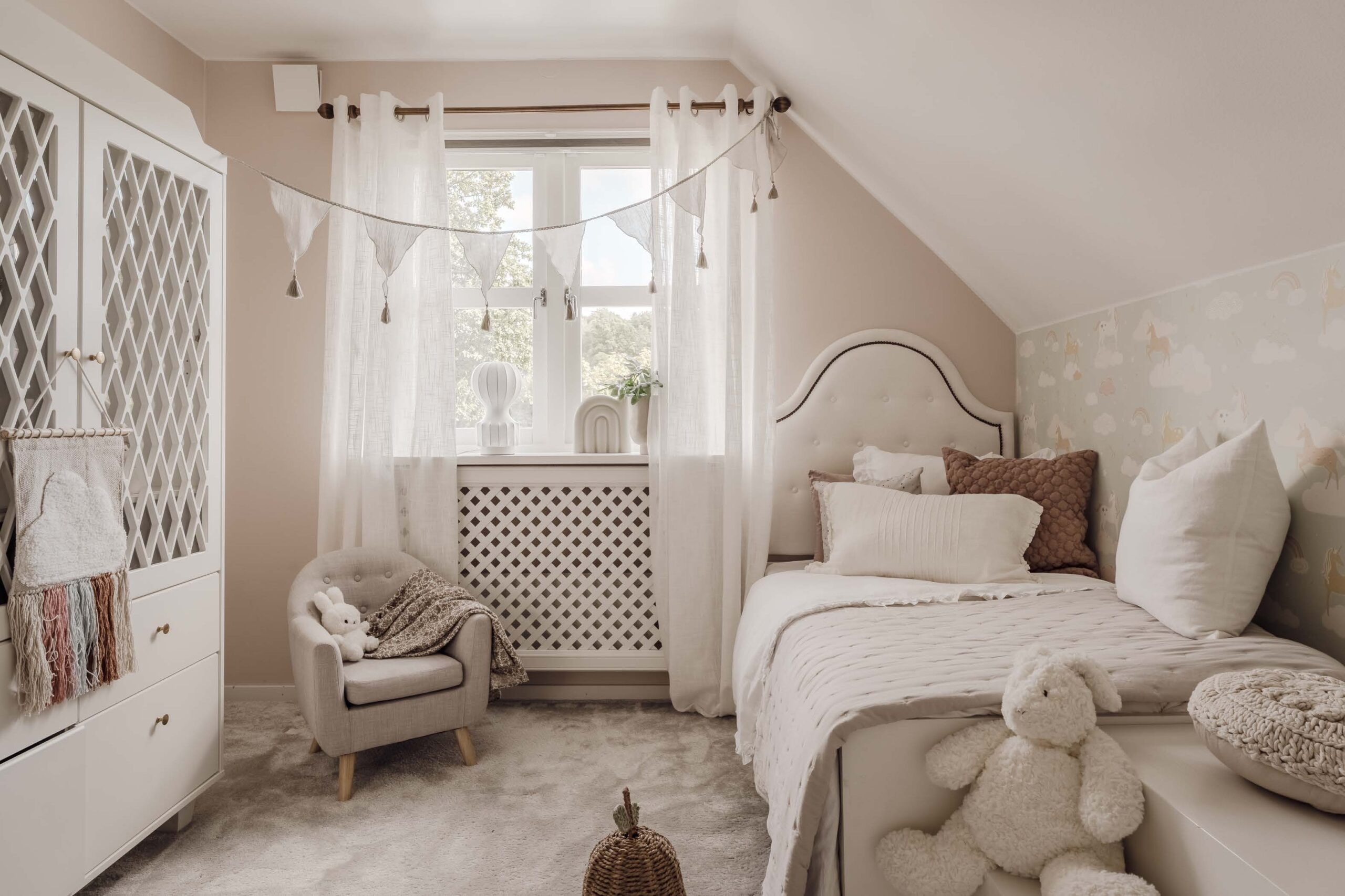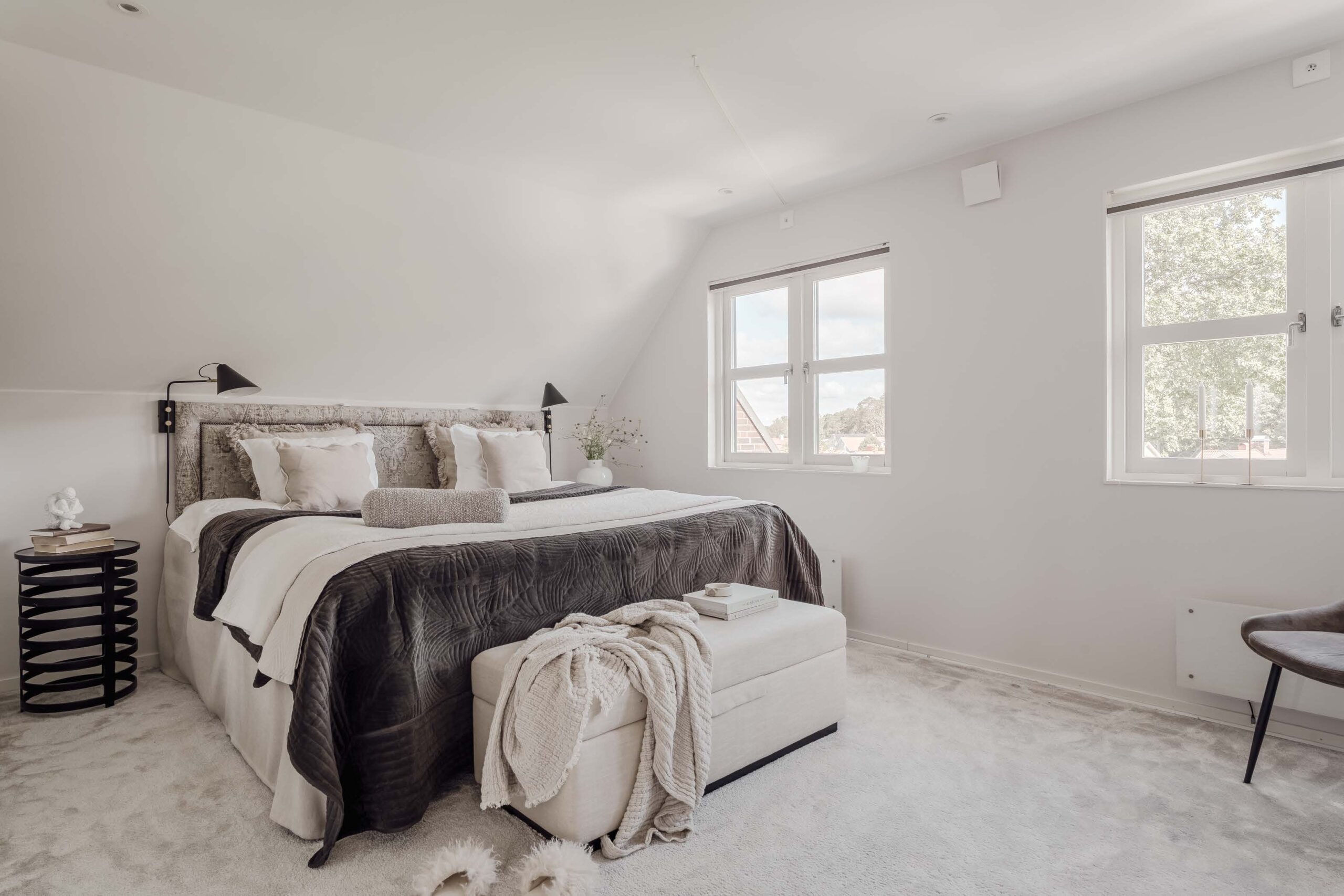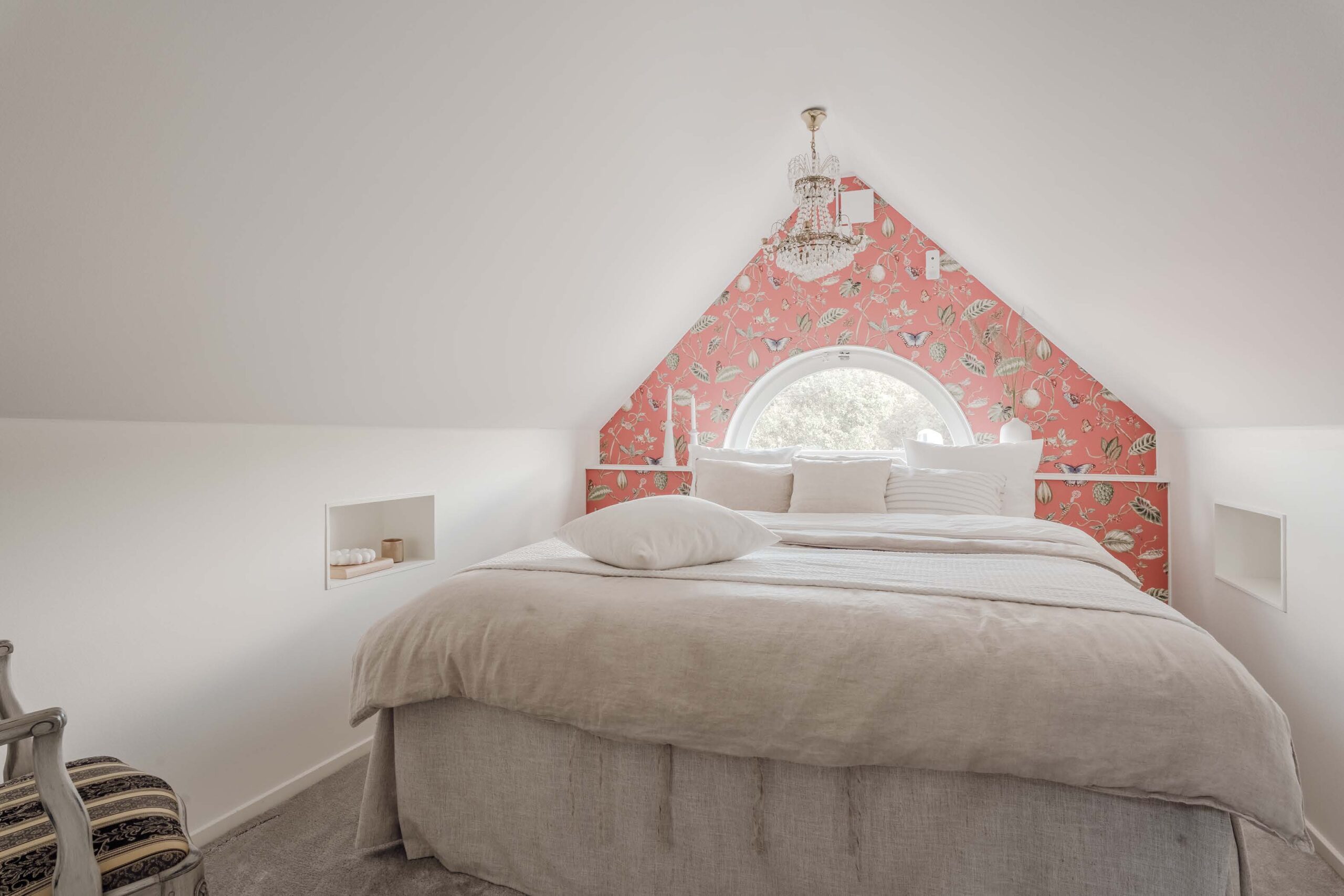 Bedrooms The sleeping quarters are distributed to maximize privacy. The upper levels house character-filled rooms, including a master suite and a unique attic bedroom with vaulted ceilings and a statement round window. A dedicated guest room or home office setup is available, catering specifically to remote working needs.